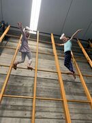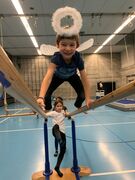 Vor allem das Minitrampolin scheint sehr beliebt zu sein. Aber auch das Schaukeln in den Ringen ist ein Favorit. Unter anderem übten wir folgende Elemente: