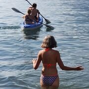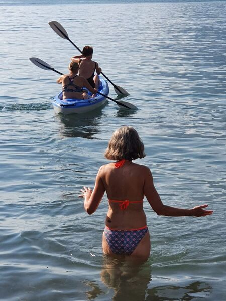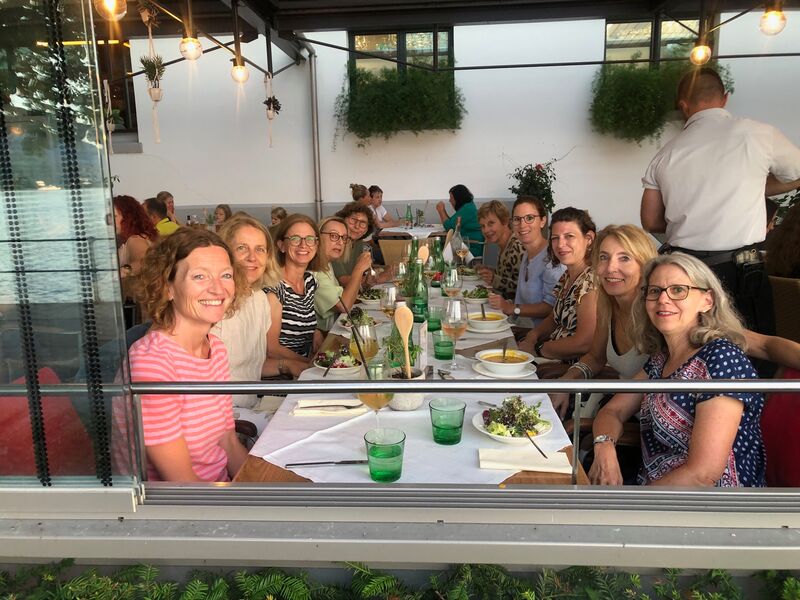 Zum Abschluss traten wir die Rückfahrt mit dem Schiff nach Thun an. Einige stiegen eine Station vorher aus, um sich im herrlichen Thunersee zu erfrischen (Wow: bei 16 Grad!) und der Seepromenade entlangzuflanieren. Die übrigen Frauen fuhren weiter nach Thun, und schon befanden wir uns unter den Schaulustigen, die die Surfer bewunderten, die die durch die Schleusen hervorgebrachten Wellen ritten. Kurz darauf stärkten wir uns auf einer Sonnenterrasse, bevor wir uns von der atemberaubenden Kulisse verabschiedeten. Schliesslich traten wir die Reise voller schöner Erinnerungen und einem Lächeln auf den Lippen nach Rüschlikon an.