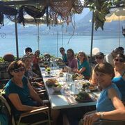 Schon bald war klar, die Reise geht ins Tessin, unser "Sonnenkanton", naja, für unser Turnfahrt-Wochenende stimmte das leider nicht. Im Zug wurden wir mit einem ausgiebigen Frühstück verwöhnt, wobei wir uns für diesen abwechslungsreichen Tag stärken konnten. Schon bald teilten uns Margit und Agi das vorgesehene Schönwetterprogramm mit; Standup-Paddling wäre angesagt gewesen! So cool! Sie mussten ihre Pläne aufgrund des Regens und der kühlen Temperaturen jedoch schweren Herzens ändern. Indoor-Badespass im Tamaropark war die Alternative. Diverse Rutschbahnen, warmes Sprudelwasser und die wohltuenden Saunen, alle kamen auf ihre Rechnung. Am Nachmittag führte uns das super OK-Team, Margit und Agi, nach Lugano. Der schöne, zwar etwas nasse Spaziergang entlang dem Luganersee nach Gandria war sehr kurzweilig und abwechslungsreich. An einem wunderschönen Platz, direkt am See genossen wir den typisch, tessinerischen Apéro.