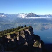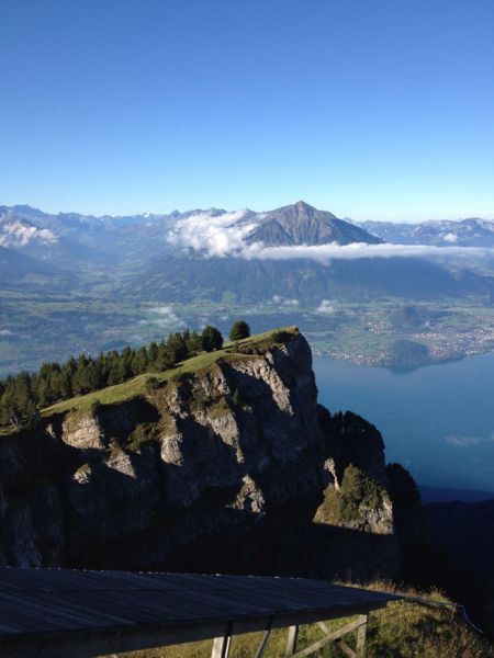Gut gestärkt machten wir uns auf den Weg nach Erlenbach im Simmental zur Talstation der Stockhornbahn, die uns hoch hinauf auf das Stockhorn brachte. Auf 2190 Metern über Meer, wo wir uns in den Wolken fast schon wie Königinnenfühlten, wurde uns eine Aussicht geboten, die einem Panorama-Bildband Konkurrenz gemacht hätte. Die Berner Alpen, der Thunersee, die umliegenden Berge. Ein einziges atemberaubendes Gemälde aus Natur! Da blieb einem wirklich die Luft weg – oder vielleicht lag es auch an der Höhenluft.