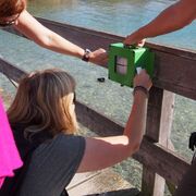 Auf dem höchsten Punkt angekommen, darf Corinne dann zeigen, wie schnell sie im Kette einhängen ist. Das ist jedoch weniger erwähnenswert, als dass sie danach mit Landjägerfett im Nu ihre Hände wieder sauber hat...