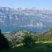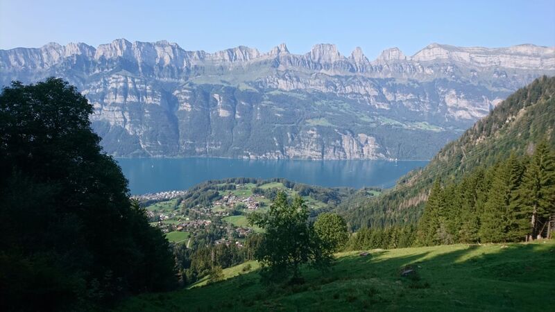 Die nächsten 2 Tage wurde dann natürlich auch gewandert. Sei es mit anderen Touristen in den Flumserbergen (auch Selun haben wir gesehen) mit herrlicher Bergsicht, oder im verwunschenen Kastanienwald oberhalb Murg. Eine heisse Erfahrung, die uns gut gelaunt zum Schwitzen gebracht hat. Und das Mitte September. Zum Glück konnten wir da zwischendurch auch mal relaxt mit dem E-Trotti die Gegend bis Walenstadt erkunden. Dies meisterten alle problemlos (im Gegensatz zum Sitzen auf einem Bänkli, was für jemanden doch eine Herausforderung war und er im Flug den Boden unter dem Füdli gefunden hat). Verflixt, Zuestoll und Schibenstoll!