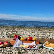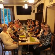 Wie immer wurde bei der Hinfahrt gerätselt, wohin es diesmal wohl geht. Als wir vor der Fähre standen, war klar, dass Meilen der nächste Ort ist. Dort erlebten wir das erste kulinarische Highlight – Kaffee und Gipfeli in einem liebevoll gestalteten Kaffeehaus auf dem Dorfplatz. Anschliessend wanderten 10 Turnerinnen durch den grünen Meilemer Tobel. Das Wetter sah nach Regen aus und es tröpfelte auch, aber in den entscheidenden Momenten schien die Sonne - beim Picknick in Stäfa und beim Apéro am See in Schmerikon, wo wir mit den 2 Teilnehmerinnen der gemütlichen Gruppe den Sonnenuntergang genossen.