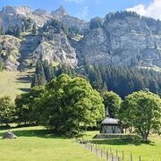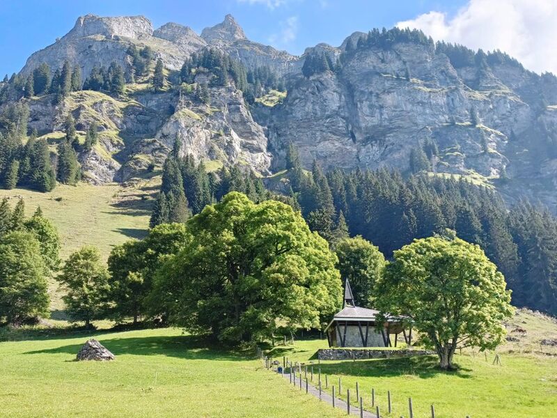 Montag: Wir sind wieder mit dem Bus unterwegs…… Diesmal brachte er uns erstmal nach Reichenbach und von dort durch das Naturparadies Kiental zum Tschingelsee. Dort beginnt die steilste Bergpostauto-Strecke Europas. Ein spezieller Bus fährt zentimetergenau durch Haarnadelkurven und vorbei an herabstürzenden Wasserfällen bis zur Griesalp. Aber dieses Spektakel hoben wir uns noch etwas auf. Zu Fuss starteten wir den spektakulären Aufstieg, genannt «Wildwasserweg», hinauf zur Pochtentalp und zur Griesalp. Der Anblick der in der Sonne glitzernden Gletscher und des «Blüemlisalphorn» (3661 m) machte ehrfürchtig. In der «Ehre Gottes Kapelle» besammelten wir uns und Tina entpuppte sich als erstaunlich gute Vorbeterin. Nach dem kurzen Abstieg zur Pochtenalp und einem feinen Zmittag wagten wir uns mit dem Bus talwärts auf die Haarnadelstrecke – ein besonderes Erlebnis!