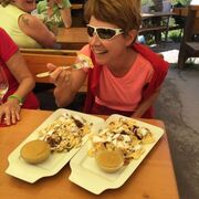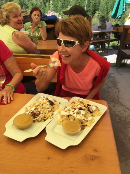 Der Marschbefehl für Sonntag hiess: 0800 Frühstück, 0900 Abmarsch in Wanderbekleidung. Das Ziel war wie immer unbekannt. Per Postauto gelangten wir zu unserem Startort des Lechtaler Höhenwegs. Es folgte eine aussichts- und abwechslungsreiche Wanderung über Stock und Stein zum Cafe Uta. Die Auswahl auf der Karte erwies sich als genauso gross, wie der bestellte Kaiserschmarn – für eine Person schlicht nicht zu bewältigen!