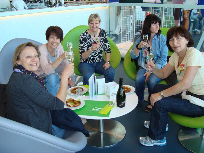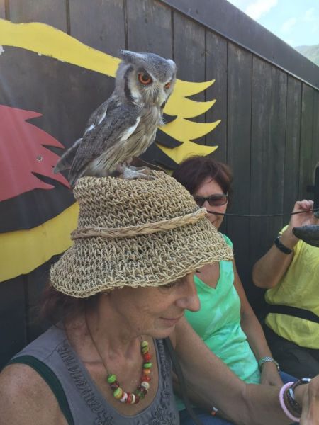 Der Zug brachte uns zum Sekt-Frühstück nach Buchs SG. Gut gestärkt wurden wir nach einem kurzen Spaziergang im 10km2 grossen Greifvogelpark von den „wilden Tieren“ bereits lautstark empfangen. In einer gut einstündigen Führung erhielten wir spannende Informationen über verschiedene Eulen und Greifvögel. Bei der anschliessenden Flugshow konnten wir uns von der Schönheit der Schleiereule auf Karin‘s Kopf, der Kraft der Krallen am „gezeichneten“ Arm von Corinne genauso überzeugen wie am Flugtalent des 3-jährigen Riesenseeadlers, der nicht immer so wollte wie sein Chef – er kennt eben unseren Spruch „ich Chef – du nix“ anscheinend noch nicht J