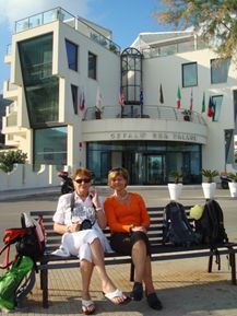 Also „ab in den Süden….“; aber so schnell hob unser Flugzeug nicht ab. Wegen kräftiger Gewitter rund um Zürich verzögerte sich unser Abflug um ca. 1.5 Stunden! Es war schon dunkel als wir auf der Insel Malta landeten. Der Transfer vom Flughafen endete in der Palmstreet von San Gilians vor einer Villa. Dies sollte unser Heim sein für die nächsten Tage. Eine Villa nur für uns dreizehn Frauen! Trotz später Stunde wurden wir noch sehr freundlich im Restaurant Peppino’s bedient; satt und fröhlich bezogen wir unsere Zimmer und waren gespannt auf den nächsten Tag.