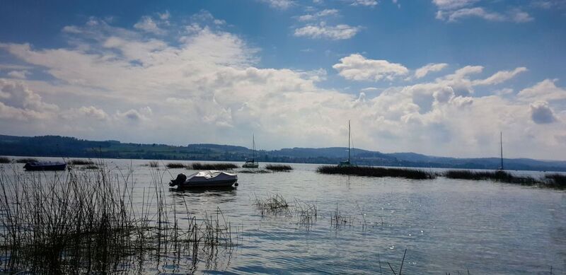 Angesichts der verschiedenen Verkehrs- und Fortbewegungsmittel fragten wir uns, ob wir als Nächstes fliegen werden. Das nicht, aber ein schickes Taxiboot brachte uns zu den Zürichsee-Inseln Lützelau und Ufenau. Bei Weisswein und Federnkohl-Chips kamen wir ins Philosophieren, ob die reichen Villen und Yachten, die wir in Hurden bestaunt haben, glücklicher machen als Camping auf der Lützelau.