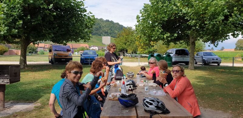 Am Murtensee treffen wir die drei Gemütlichen zum Lunch. Die Sonne zeigt sich immer mehr. Leider ging die Badehose vergessen, manch eine – allen voran Karin – wäre gerne ins kühle Nass gesprungen.
