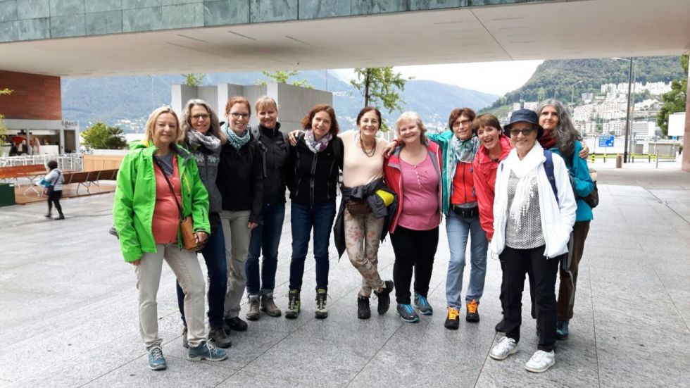 Endlich! Die Sonne ist da! Am Morgen zwar noch etwas hinter den dicken Regenwolken versteckt, doch schon bald zeigte sie sich immer mehr. Am Nachmittag war es sogar richtig heiss auf der Piazza Grande in Lugano. Wir freuten uns alle auf die Wanderung mit der wunderschönen Aussicht auf den See und der abwechslungsreichen Natur, Kastanienbäume, Pilze und viel, viel Wald... Zahlreiche Treppenstufen führten uns schliesslich nach Morcote. Während wir die Landschaft genossen, vergnügten sich Bea und Erika im Swiss Miniatur in Melide. Der Abschied vom charmanten Tessin bei herrlichem Sonnenschein fiel uns allen schwer.