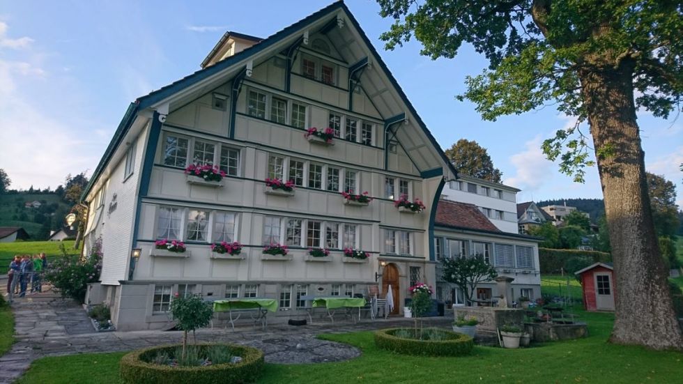 Weiter ging es mit Zug und Bus nach Uznach, wo wir frohgemut in den Landgasthof «Zur frohen Aussicht» einkehrten. Nicht nur die Aussicht, auch der Abend war froh. Der Wirt überraschte uns mit Fondue Chinoise. Dieser beeindruckende Familienbetrieb hat nicht nur Restaurant und Hotel, sondern auch eine eigene Metzgerei und eine Wellness-Zone mit Schwimmbad, in der Corona-Zeit selbst ausgebaut (auch die Köche bauten mit).