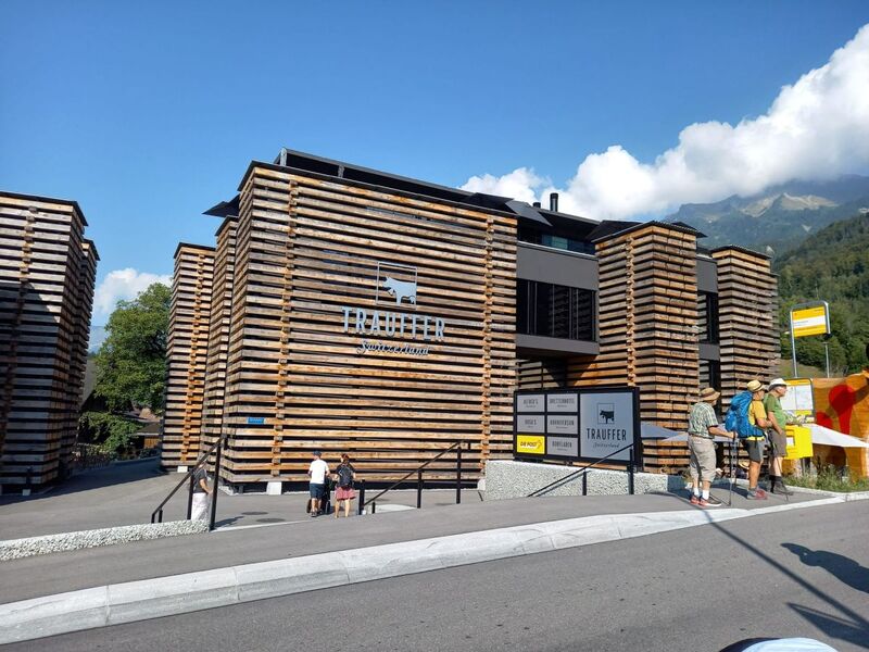 Erstes Highlight war der Besuch der «Trauffer Erlebniswelt» in Hofstetten bei Brienz. Von dort kommt die kultige Holzkuh mit den roten Flecken her. Während der Besichtigung erfährt man sehr viel über die Holzkuhkunde und wir hatten wirklich «kei Müeh mit de Chüeh». Nach einer kurzen Stärkung in «Rosas Sommergarten» ging es mit Bus und Zug weiter bis Frutigen. Zu Fuss ging es zum «Frutigresort» in dem wir zwei Nächte einquartiert waren. Und da wir uns am Samstag ja noch nicht so viel bewegt hatten, war das Aquafit Training genau das Richtige, um unsere Beinmuskeln auf das Kommende vorzubereiten.