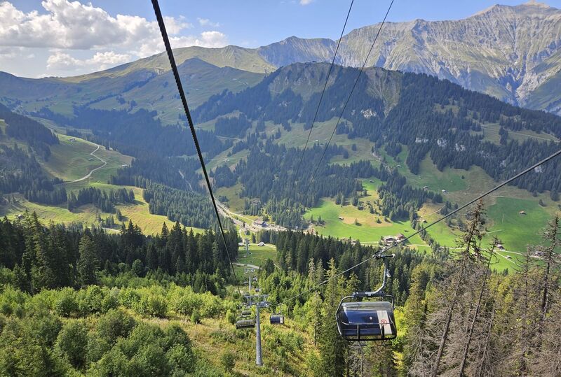 Am nächsten Morgen ging es mit Regenschutz im Rucksack hoch hinaus. Corinne lotste uns per