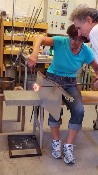 In der Glasbläserei "Mondglas" tauchten wir ein in eine Welt von Glas, Farben, Hitze und wunderschönen Tellern, Gläsern, Kugeln, Vasen, Schüsseln… Nach einem Apéro und einer kleinen Einführung in die Kunst des Glasblasen und der Entstehung von Glas, durften wir unsere kreative Seite ausleben. Jede hatte die Möglichkeit eine Blume oder eine Kugel zu formen. In ein paar Tagen werden wir unsere Kunstwerke in Empfang nehmen können. Wir sind wirklich gespannt, wie das Endprodukt nun wirklich aussieht!
