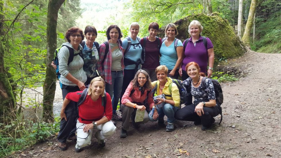 Nach einem feinen Frühstück ging unsere Überraschungsfahrt weiter. Allerdings mussten wir in Stühlingen mehrere Anläufe nehmen um den Bahnhof zu finden. Dieser sah nicht wirklich nach Bahnhof aus eher nach einem verlassenen Ort mitten im Wilden Westen. Doch zu aller Überraschung hielt sogar ein Zug und brachte uns ein Dorf weiter nach Weizen. Mit der Sauschwänzlebahn – einer Dampfbahn - fuhren wir weiter. Diese hat ihren Namen durch die weitläufige Streckenführung erhalten. Begleitet wurden wir durch Angestellte, gekleidet in historischen Trachten aus dem 18. Jahrhundert. Zur Freude aller war sogar eine Schnapsdrossel dabei, die uns mit kleinen Feiglingen eindeckte. Nach einer guten Stunde Fahrt durch das wildromantische Wutachtal erreichten wir die Station Blumberg, von wo aus wir zum Zollhaus nach Wutachmühle marschierten. Nach einem stärkenden Mittagessen folgte der Einstieg in die Wutachschlucht. Eine der letzten ursprünglichen Wildflusslandschaften in Mitteleuropa. Eine fast vierstündige Wanderung durch eine fantastische Flora und Fauna, durch urwüchsige Wälder, romantische Schluchten und Wasserfälle. Ein Naturspektakel, dass jede Strapaze wert war.