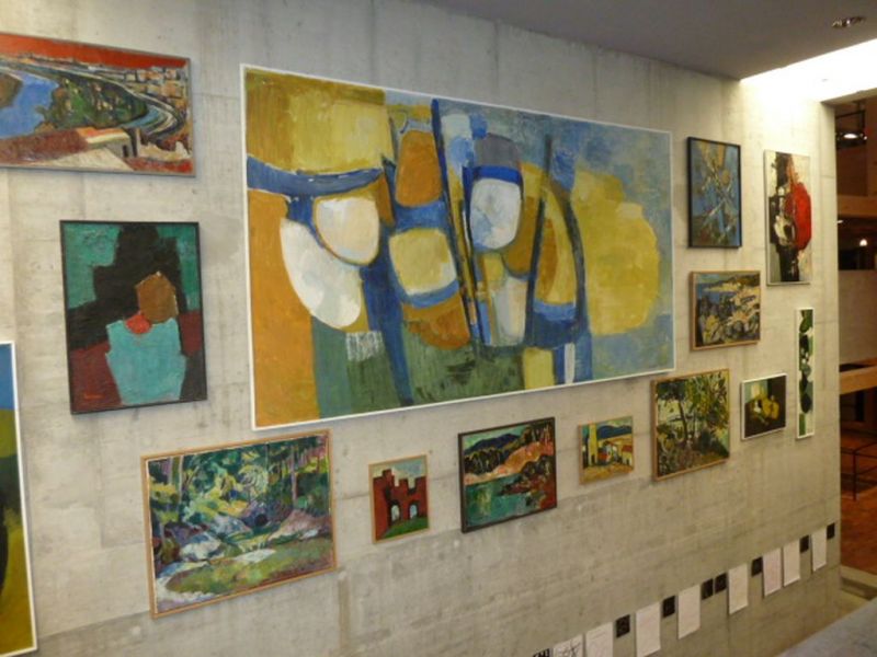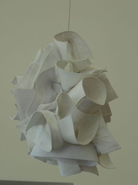 Wer Appenzeller Bauernmalerei erwartet, wird ziemlich überrascht. Im historischen Teil bestaunen wir die Bilder von Vater Carl August Liner (1871 - 1946) und Sohn Carl Walter Liner (1914 - 1997) . Liner Sen. bereiste vor mehr als 100 Jahren zum ersten Mal Südeuropa und Nordafrika und später zusammen mit seinem Sohn malten sie dort viele Bilder. Sehenswert ist jedoch auch die Anlage, eine ehemalige Ziegelei, wo bis in die 40er Jahre auf mühsame Art Ziegel gebrannt wurden. Die Museumsleiterin erklärt uns die Entstehung und den Werdegang der Künstler, der Kunsthalle und führt uns dann in den modernen Betonteil mit der aktuellen Ausstellung von Andrea Ostermeyer. Am eindrücklichsten sind wohl eine lange Installation aus mindestens dreissig zusammengenähten Foulards verschiedener Muster, Alter und Stile und ein hängendes Bündel weisser Kragen von Herrenhemden, die der Ausstellung den Namen White Collar geben.